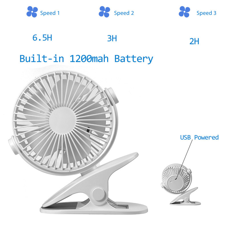 하이 라이트: | GXZ-F835 작은 휴대용 전지 팬,FCC 1200mAh 작은 휴대용 전지 팬,ABS 재충전이 가능하 클립 유모차 팬 |